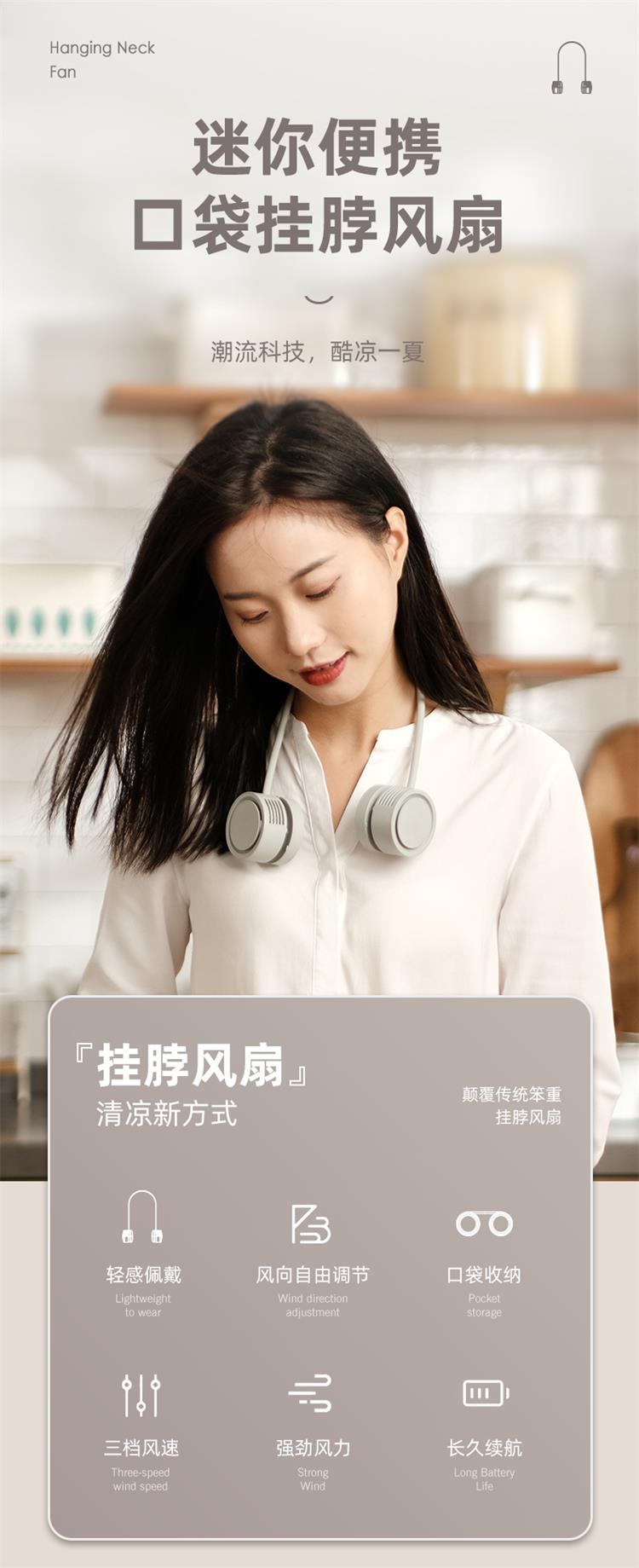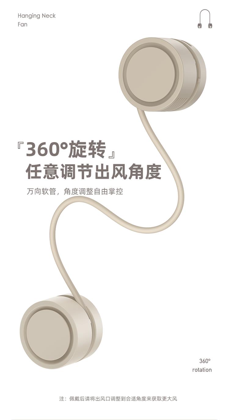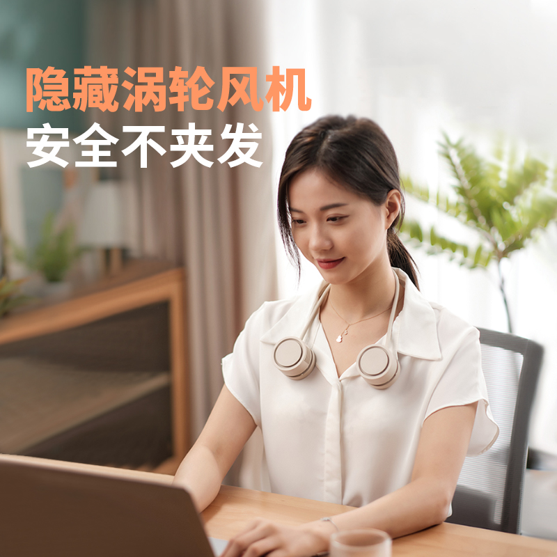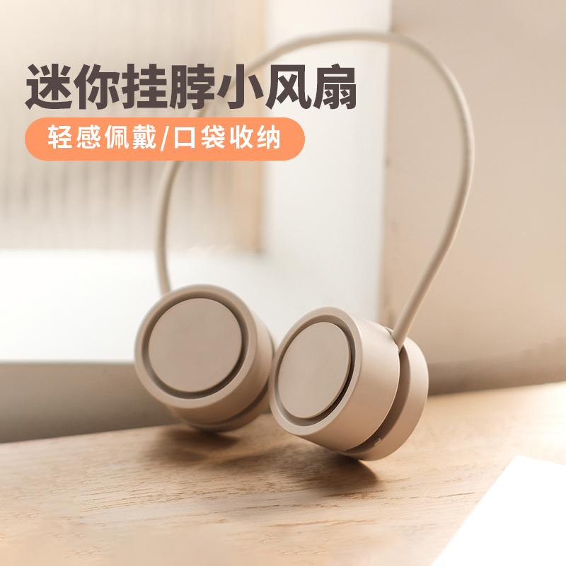 掛脖風扇無葉手持便式隨身掛脖子風攜扇迷你戶外爬山釣魚運動頸掛式USB小電扇夏日出行必備長續航電風扇(杏色)
