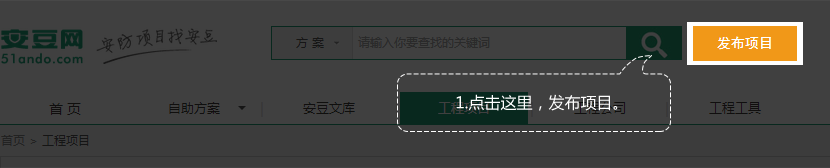 進(jìn)入首頁搜索欄右側(cè)點(diǎn)擊“發(fā)布項(xiàng)目”。