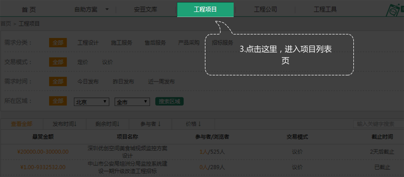 查看工程項(xiàng)目:首頁導(dǎo)航欄點(diǎn)擊“工程項(xiàng)目”進(jìn)入項(xiàng)目列表頁。