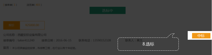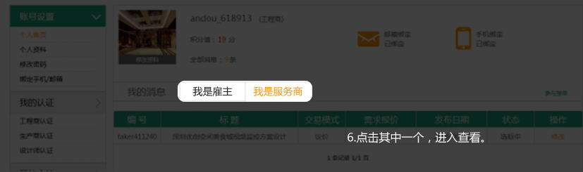進(jìn)入個(gè)人中心,“我是服務(wù)商”點(diǎn)擊標(biāo)題下面具體項(xiàng)目,在項(xiàng)目詳情頁進(jìn)行選標(biāo)